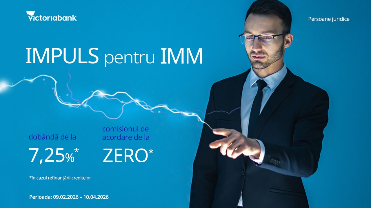 Pentru orice antreprenor, accesul la finanțare înseamnă bani, stabilitate și capacitatea de a lua decizii fără presiuni inutile. Iar atunci când costurile sunt clare și predictibile, afacerea poate merge mai departe cu încredere. Pornind de la aceste necesități reale, Victoriabank lansează campania „Impuls IMM”, o ofertă de finanțare destinată întreprinderilor mici și mijlocii care caută soluții pentru dezvoltarea afacerii și mai puțini bani pierduți pe dobânzi și comisioane.