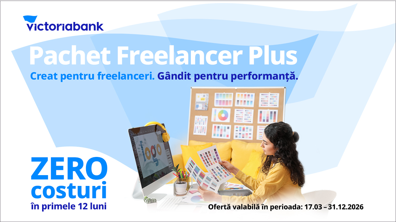 Pachetul „Freelancer Plus” este disponibil în toate unitățile Victoriabank. Oferta este valabilă până la 31 decembrie 2026.