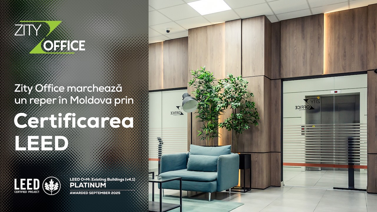 Zity Office devine pionier pe piața imobiliară din Republica Moldova, fiind prima clădire de birouri din țară certificată LEED® v4.1 O+M: Operations and Maintenance la nivel Platinum. Distincția atestă că proiectul se aliniază celor mai înalte standarde internaționale de sustenabilitate și confirmă faptul că excelența poate fi atinsă și local, prin investiții responsabile și viziune pe termen lung.