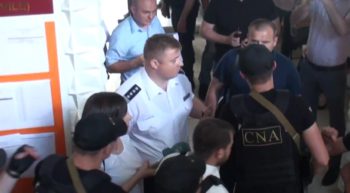 (VIDEO) Angajații CNA l-au scos pe Shor spre protestatari, chiar dacă poliția era împotrivă