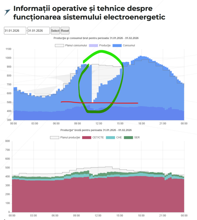 La momentul actual, Sistemul Electroenergetic Național operează în parametri normali, consumul de energie electrică se încadrează în limitele valorilor prognozate, fără a fi necesară procurarea energiei electrice de avarie.”