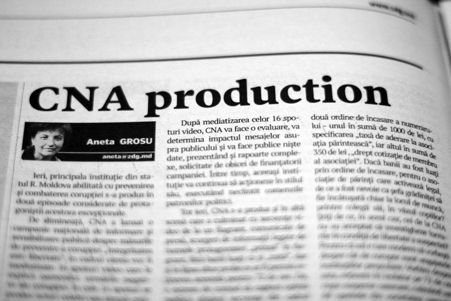 De dimineaţă, CNA a lansat o campanie naţională de informare şi sensibilizare publică despre măsurile de prevenire a corupţiei „Integritatea este libertate”, în cadrul căreia vor fi mediatizate 16 spoturi video care le explică oamenilor urmările negative ale corupţiei. În cele 16 spoturi se produc actori celebri sau simpli cetăţeni care informează publicul despre cât de mare e corupţia infiltrată în societate, mai ales dacă ţii ochii plecaţi şi vorbeşti în şoaptă despre acest fenomen. În alt spot, timp de vreo cinci minute, ni se explică sensurile noţiunii de regim juridic al cadourilor, constituite din cutii de bomboane sau sticle de băuturi selecte.