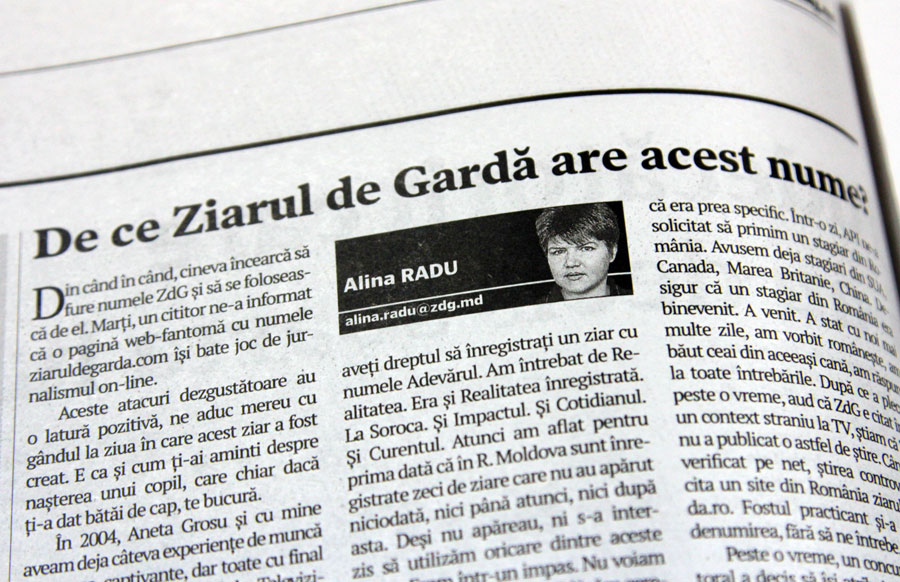 Nu ne-am gândit vreodată că cineva poate să ne fure numele, pentru că era prea specific. Într-o zi, API ne-a solicitat să primim un stagiar din România. Avusem deja stagiari din SUA, Canada, Marea Britanie, China. Desigur că un stagiar din România era binevenit. A venit. A stat cu noi mai multe zile, am vorbit româneşte, am băut ceai din aceeaşi cană, am răspuns la toate întrebările. După ce a plecat, peste o vreme, aud că ZdG e citat într-un context straniu la TV, ştiam că ZdG nu a publicat o astfel de ştire. Când am verificat pe net, ştirea controversată cita un site din România ziaruldegarda.ro. Fostul practicant şi-a atribuit denumirea, fără să ne întrebe.