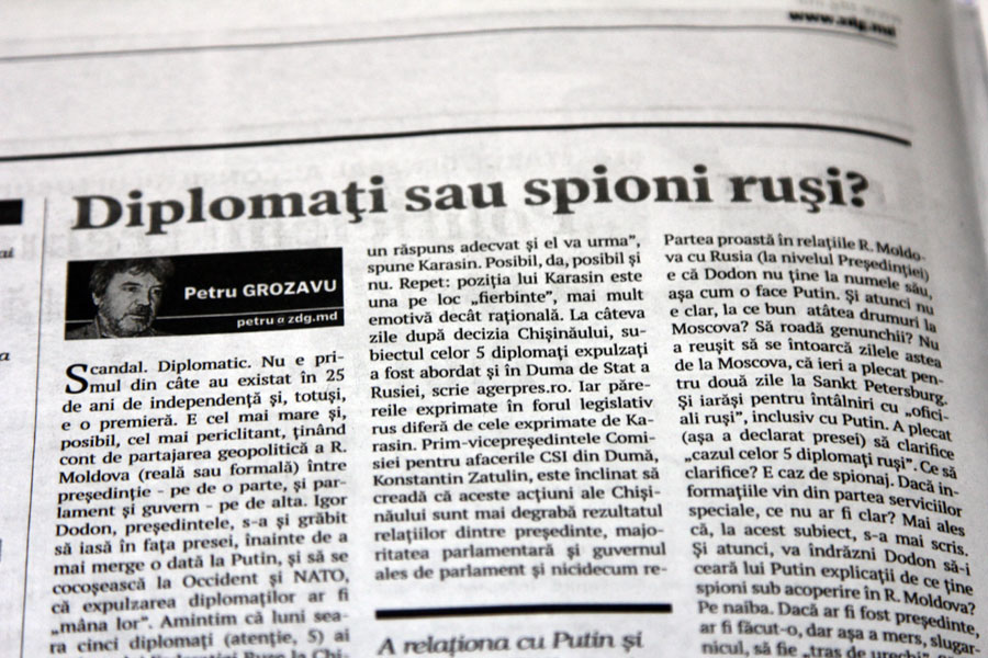 Scandal. Diplomatic. Nu e primul din câte au existat în 25 de ani de independenţă şi, totuşi, e o premieră. E cel mai mare şi, posibil, cel mai periclitant, ţinând cont de partajarea geopolitică a R. Moldova (reală sau formală) între preşedinţie – pe de o parte, şi parlament şi guvern – pe de alta. Igor Dodon, preşedintele, s-a şi grăbit să iasă în faţa presei, înainte de a mai merge o dată la Putin, şi să se cocoşească la Occident şi NATO, că expulzarea diplomaţilor ar fi „mâna lor”. Amintim că luni seara cinci diplomaţi (atenţie, 5) ai Ambasadei Federaţiei Ruse la Chişinău au fost declaraţi „persona nongrata”, având indicaţia ca, în 72 de ore, să părăsească R. Moldova. Solicitat de presă, Ambasadorul Federaţiei Ruse la Chişinău, Farit Muchametşin, deşi a confirmat cazul, a refuzat să dea explicaţii. „Am primit notificarea, o studiem… Deocamdată nu vom comenta”, a fost răspunsul şefului diplomaţiei ruse în R. Moldova. Nu a fost mai generos, în acest sens, şi premierul Pavel Filip, care, la fel ca şi Muchametşin, a confirmat informaţia, dar nu a dat nici el mai multe detalii, făcând trimitere la rigorile diplomatice. „Nu pot să spun cine sunt oamenii aceştia, pentru că regulile nu ne permit să facem acest lucru. Au fost declaraţi persoane non grata în baza informaţiei secrete a serviciilor speciale. Este o procedură standard. Asta este tot ce vă pot spune”, a declarat Filip presei. Nici Moscova nu a făcut mare zarvă pe marginea cazului. O primă reacţie, în fond emotivă (şi asta, probabil, pentru că a fost una imediată, în aceeaşi seară de luni), a venit din partea viceministrului rus de Externe, Grigori Karasin. După cum era şi firesc pentru cazuri de acest gen, Karasin a calificat decizia Chişinăului drept „neprietenească”, o „gravă provocare” la adresa Rusiei şi a lui (?!) Igor Dodon (se operează, ca să vezi, exact în aceeaşi manieră ca şi în cazul preşedintelui sirian Bashar al-Assad: şi acela prieten al Moscovei, şi acela pradă a provocărilor puse la cale de americani), care pledează la Chişinău pentru o normalizare a relaţiilor cu Federaţia Rusă. Ce va urma? Rusia „va răspunde şi răspunsul nostru va fi „destul de dur… Ne vom gândi la un răspuns adecvat şi el va urma”, spune Karasin. Posibil, da, posibil şi nu. Repet: poziţia lui Karasin este una pe loc „fierbinte”, mai mult emotivă decât raţională. La câteva zile după decizia Chişinăului, subiectul celor 5 diplomaţi expulzaţi a fost abordat şi în Duma de Stat a Rusiei, scrie agerpres.ro. Iar părereile exprimate în forul legislativ rus diferă de cele exprimate de Karasin. Prim-vicepreşedintele Comisiei pentru afacerile CSI din Dumă, Konstantin Zatulin, este înclinat să creadă că aceste acţiuni ale Chişinăului sunt mai degrabă rezultatul relaţiilor dintre preşedinte, majoritatea parlamentară şi guvernul ales de parlament şi nicidecum rezultatul relaţiilor dintre cele două state. În Duma de Stat există voci care cred că, de la venirea lui Dodon la Preşedinţie, relaţiile Chişinău-Moscova nu au devenit mai bune, decât în aparenţă, la nivel de declaraţii şi de decor politic. Faptul că Dodon speculează şi afişează în interese personale sau ale cercului său de interese relaţii speciale cu Putin şi îşi permite declaraţii deseori neîmpărtăşite în societatea moldovenească sau la nivelul puterii, nu poate face bine relaţiilor cu Rusia. Ce minunat ar fi să creadă acelaşi lucru şi Putin. Dar, poate că şi crede, însă nu are încotro. Dacă ăsta e Dodon, de unde să vrei mai mult?  Aşa sau altfel, pentru Moscova, care îşi leagă mari speranţe de Igor Dodon, e bine să înţeleagă că Dodon şi R. Moldova nu e acelaşi lucru, oricât de mult s-ar acoperi el cu „relaţiile multiseculare dintre popoarele moldovenesc şi rus sau cu pravoslavnicia rusă, cu migranţii moldoveni ori numele lui Putin. Partea proastă în relaţiile R. Moldova cu Rusia (la nivelul Preşedinţiei) e că Dodon nu ţine la numele său, aşa cum o face Putin. Şi atunci nu e clar, la ce bun  atâtea drumuri la Moscova? Să roadă genunchii? Nu a reuşit să se întoarcă zilele astea de la Moscova, că ieri a plecat pentru două zile la Sankt Petersburg. Şi iarăşi pentru întâlniri cu „oficiali ruşi”, inclusiv cu Putin. A plecat (aşa a declarat presei) să clarifice „cazul celor 5 diplomaţi ruşi”. Ce să clarifice? E caz de spionaj. Dacă informaţiile vin din partea serviciilor speciale, ce nu ar fi clar? Mai ales că, la acest subiect, s-a mai scris. Şi atunci, va îndrăzni Dodon să-i ceară lui Putin explicaţii de ce ţine spioni sub acoperire în R. Moldova? Pe naiba. Dacă ar fi fost preşedinte, ar fi făcut-o, dar aşa a mers, slugarnicul, să fie „tras de urechi”. Să fim atenţi la ce declaraţii a făcut Dodon în cazul celor 5: „mă declar profund indignat”, e „un gest revoltător”, o „ostilitate afişată a diplomaţiei moldoveneşti”, a guvernării „eurounioniste”, care „s-a implicat în jocuri geopolitice deosebit de periculoase ale Bruxelles-ului şi ale Washington-ului în regiune”, e o „provocare directă, menită să afecteze grav relaţiile şi parteneriatul strategic cu Federaţia Rusă”. Care parteneriat strategic cu Rusia, când, de 25 de ani, Moscova ţine sub ocupaţie Transnistria? Care bune relaţii cu Rusia, Igor Nicolaevici, dacă de 9 mai, contrar avertismentului Externelor de la Chişinău, Rusia şi-a scos, la Tiraspol, trupele la defilare militară, iar singur, în loc să te declari „profund indignat”, ai plecat la Moscova să-i ţii umbrela lui Putin la parada de pe Piaţa Roşie? Faptul că mergi, uneori şi de două ori pe săptămână, la Putin, încă nu înseamnă bune relaţii cu Rusia. A relaţiona cu Putin şi a-l sluji pe Putin sunt lucrur
