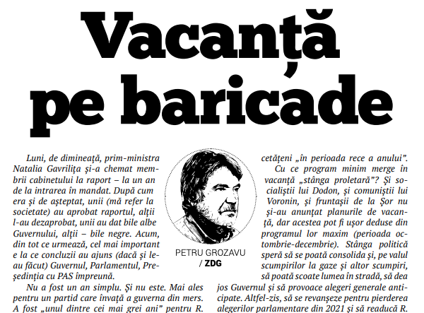 Cu ce program minim merge în vacanță „stânga proletară”? Și socialiștii lui Dodon, și comuniștii lui Voronin, și fruntașii de la Șor nu și-au anunțat planurile de vacanță, dar acestea pot fi ușor deduse din programul lor maxim (perioada octombrie-decembrie). Stânga politică speră să se poată consolida și, pe valul scumpirilor la gaze și altor scumpiri, să poată scoate lumea în stradă, să dea jos Guvernul și să provoace alegeri generale anticipate. Altfel-zis, să se revanșeze pentru pierderea alegerilor parlamentare din 2021 și să readucă R. Moldova sub controlul Rusiei. Ar fi nu doar planul, dar și visul lor de aur. Dar, până acolo, mai este. Dacă rectificările făcute de Parlament la buget vor diminua presiunea costurilor asupra consumului, protestele s-ar putea să-și piardă din actualitate și „valoare”. Și mai e ceva: lucrurile, în ultimă instanță, le decid nu Dodon, Tauber sau Voronin cu Șor. Toate deciziile se iau la Moscova ori nu se iau decât cu știrea Moscovei, pentru că schimbarea puterii la Chișinău nu e o partidă de joc în bumbi, ci un proiect politic, care cere și pregătiri, și garanții, și asistență. E gata Moscova să dea curs acestui proiect în toamnă? Are nevoie Putin de altceva și altcineva acum la Chișinău, când el a ajuns să se împrumute de la Kim Jong-un cu 100 000 de „voluntari” pentru a lupta „împotriva fascismului” în Ucraina? Sau când are la Tiraspol trupe operaționale la nici 50 de kilometri de Chișinău? Contează cum se văd lucrurile de la Moscova. Deși, nu toate depind doar de Rusia. Mai există și războiul din Ucraina, în care Rusia e implicată până peste cap și unde lucrurile nu evoluează întocmai cu scenariile inițiale ale Kremlinului. Discuția telefonică de acum două săptămâni (prima de la începutul invaziei ruse în Ucraina) dintre Secretarul de stat american, Antony Blinken, şi ministrul rus de Externe, Serghei Lavrov, nu a făcut mai multă claritate în problema războiului. Rusia nu vrea să revină la situația de până în 24 februarie. Nu l-a putut convinge pe Putin să facă pace în Ucraina nici Recep Erdogan al Turciei în cadrul întrevederii lor de săptămâna trecută la Soci. „La moment, nu există precondițiile necesare pentru aceasta”, a declarat purtătorul de cuvânt al Kremlinului, Dmitri Peskov. Deci, război și nimic altceva. În raport cu Ucraina. Dar și cu R. Moldova, chiar dacă cu R. Moldova războiul ține mai mult de provocări. Alertele (false) cu bombă, care (susține și premiera N. Gavrilița) provin din Rusia și Belarus, amenințările Tiraspolului de a adera la Rusia și protestele, pretins sociale, din Găgăuzia, la care lumea e pusă să scandeze „Rusia, Rusia…” nu sunt acțiuni întâmplătoare, ele fiind elementele aceluiași scenariu de destabilizare a R. Moldova și deturnării ei de la Vest spre Est. S-ar putea că, dacă nici cei 100 000 de nord-coreeni nu vor ajuta Rusia să câștige războiul în Ucraina, Moscova să forțeze lucrurile la Chișinău, în intenția de a schimba regimul de guvernare și a transforma R. Moldova într-o a doua Belarus, care i-ar oferi Rusiei teritoriul pentru a lupta în Ucraina. S-ar putea.