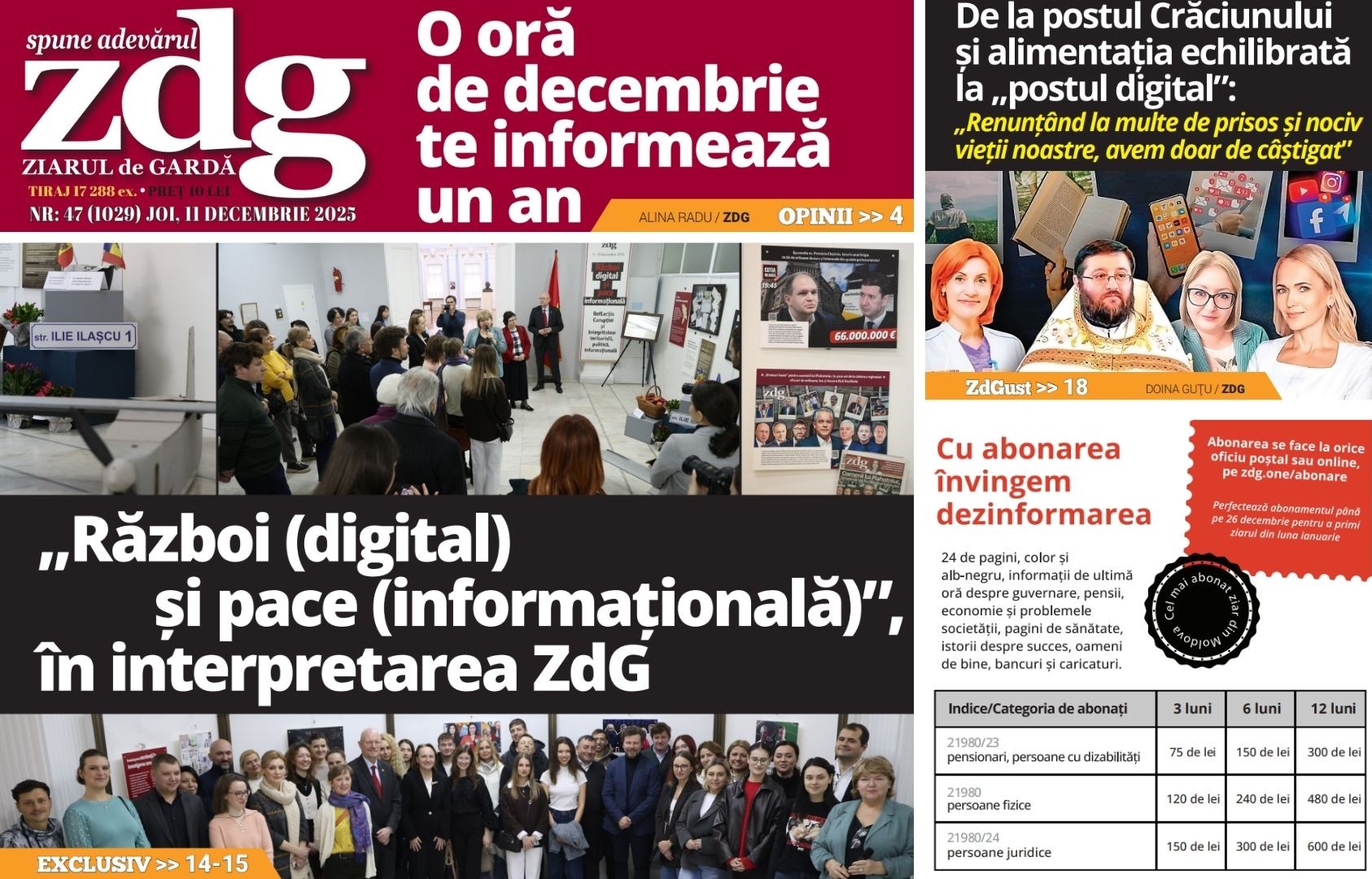 Citiți joi în ZdG: „Război (digital) și pace (informațională)”, în interpretarea ZdG și De la postul Crăciunului și alimentația echilibrată la „postul digital”