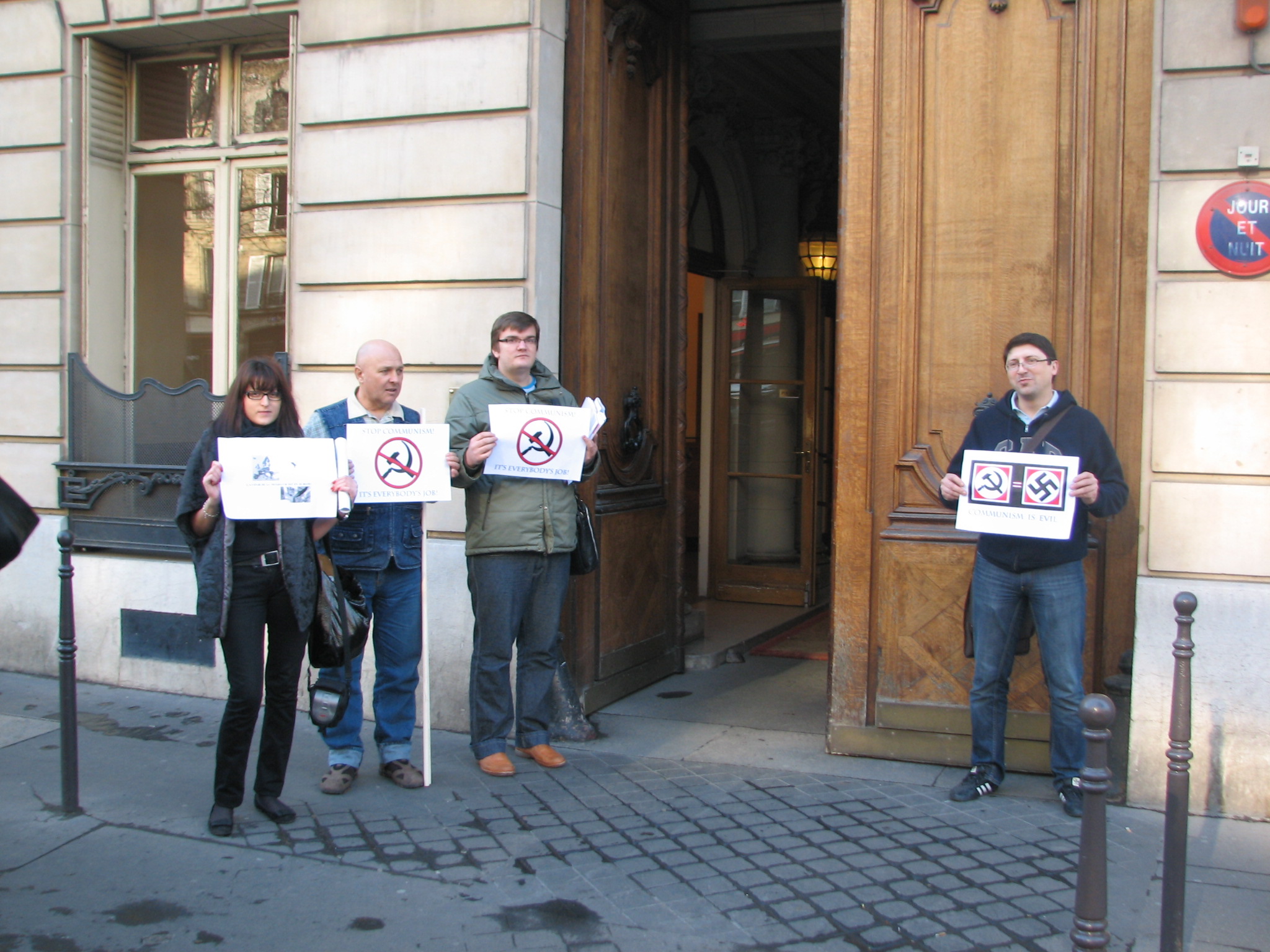 Un grup de basarabeni din Paris au manifestat astăzi, 25 martie 2011, în faţa Biroului Consiliului Europei de la Paris, unde s-a desfăşurat şedinţa Comisiei de Monitorizare a Adunării Parlamentare a Consiliului Europei (APCE). În cadrul acestei şedinţe se preconiza să fie pusă în discuţie situaţia R. Moldova şi să fie audiaţi co-raportorii APCE pentru R. Moldova.