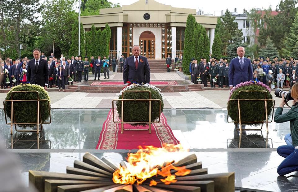 Dis-de-dimineață, la ora 9:00, la ceremonia solemnă de depunere a florilor la Memorialul Gloriei Militare „Eternitate” au participat Igor Dodon, Andrian Candu, Pavel Filip și mai mulți reprezentanţi ai corpului diplomatic, acreditat în R. Moldova.