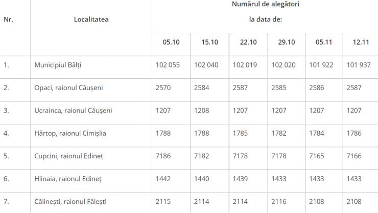 Astfel, potrivit datelor din Registrul de Stat al Alegătorilor, conform situației din 12 noiembrie, la alegeri sunt așteptați 130 626 de cetățeni cu drept de vot.
