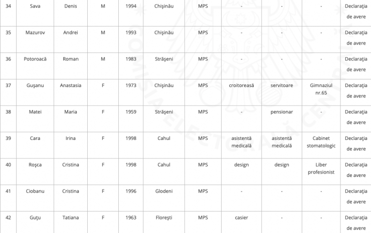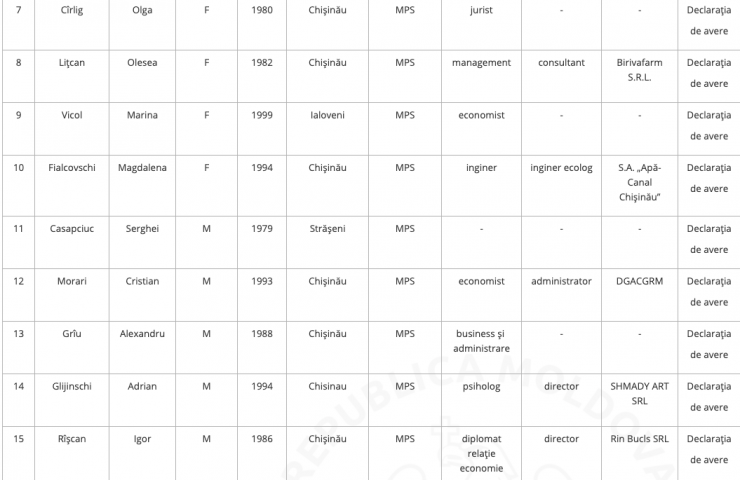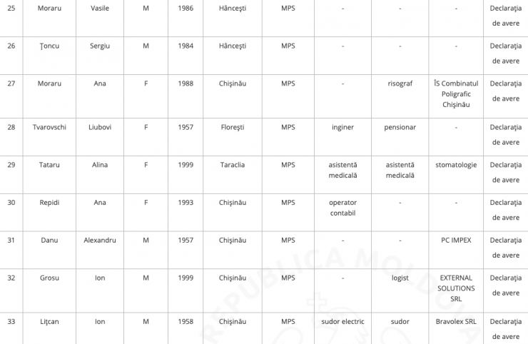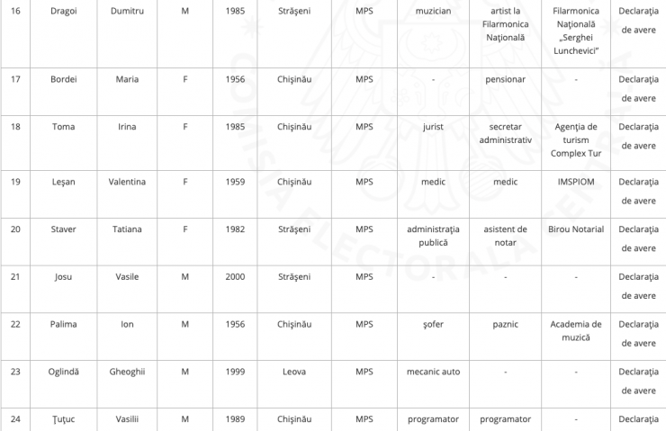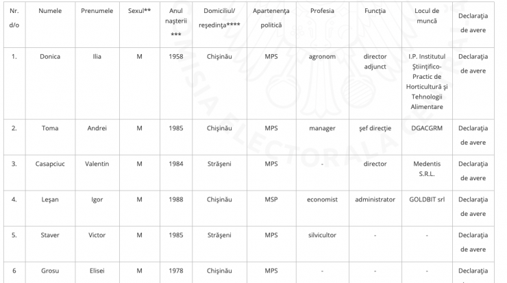 Lista completă a candidaților Partidului Mișcarea Profesioniștilor „Speranța-Надежда” la funcția de deputat pentru alegerile parlamentare anticipate din 11 iulie