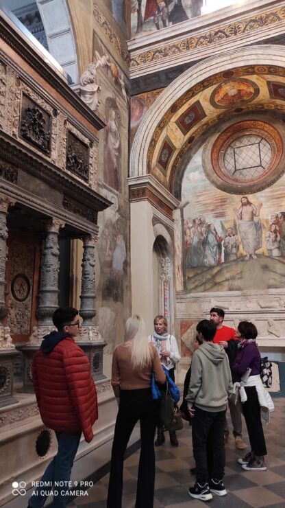 În muzeu, spre exemplu, Lilia Bicec a povestit despre covorul moldovenesc, despre tradițiile țărănești, despre simbolurile noastre – folosind picturile unor mari artiști italieni ca punți de legătură. Tot acolo, publicul italian a aflat despre limba și literatura română, despre mărțișor și încondeierea ouălor.