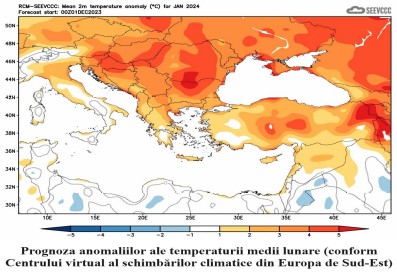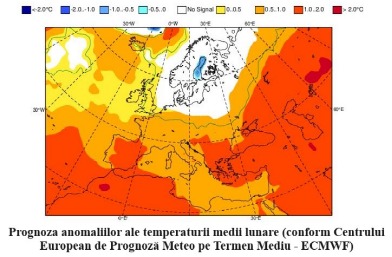 - Temperatura medie lunară a aerului se prevede peste valorile normei (norma fiind de -2..-4°C);