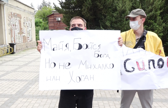 Pe pancarte, manifestanții au trecut și mesaje în limba rusă, precum „Maia, teme-te de Dumnezeu, nu de Mihalko și Hogan”, iar întrebați dacă știu cine este Dereck Hogan și Peter Mihalko, protestatarii nu au oferit niciun răspuns.