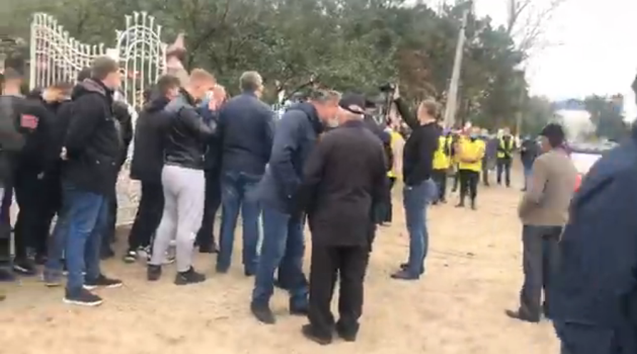 În fața porții ce dă în ograda unde a intrat Dodon pentru a participa la întrevederea cu alegătorii s-au poziționat mai multe persoane, inclusiv deputatul socialist Oleg Sava.