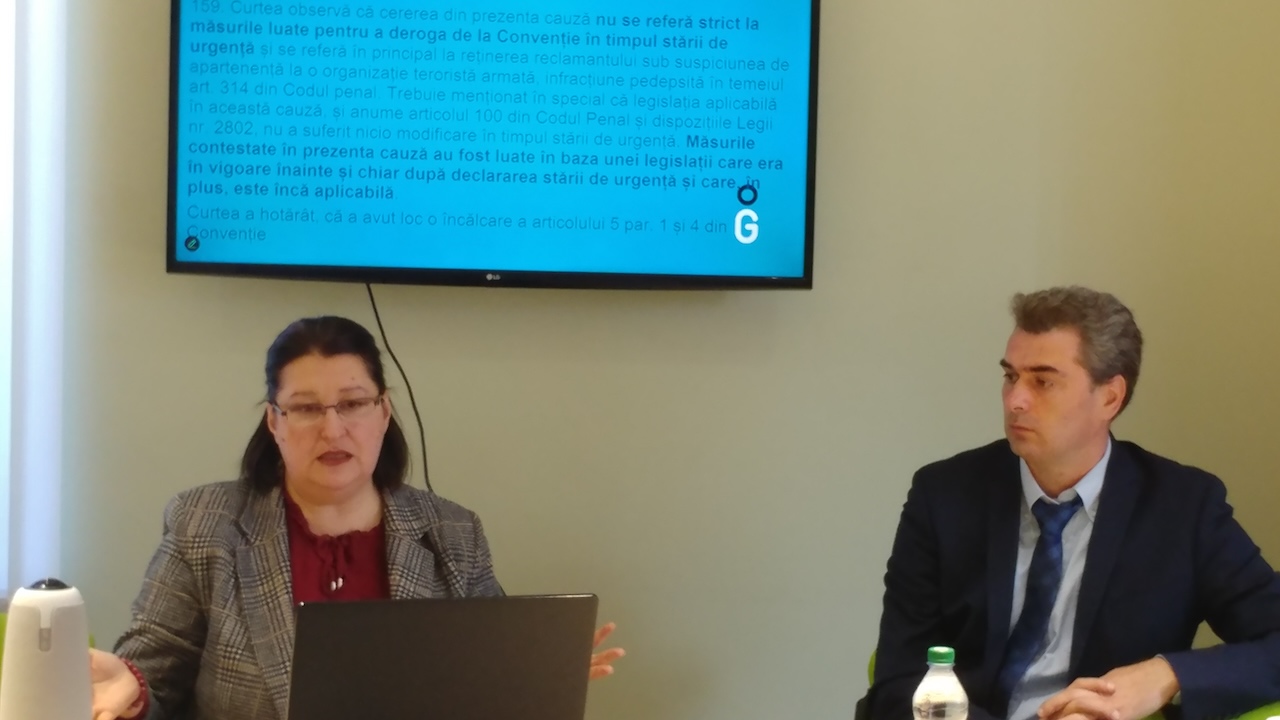 Lecție publică a fost susținută de avocata Natalia Țurcan și juristul Iurie Levinte, experți ai Ghidului privind Drepturile Omului pentru Moldova. Evenimentul a reunit avocați și stagiari interesați de aprofundarea cunoștințelor privind tematica derogărilor de la drepturile omului în conformitate cu abordările organismelor Națiunilor Unite și practica Curții Europene a Drepturilor Omului. Formatorii au invitat participanții să exploreze distincția conceptuală extrem de importantă dintre restrângerile drepturilor omului (limitări în condiții generale) și derogările în caz de stare de urgență.
