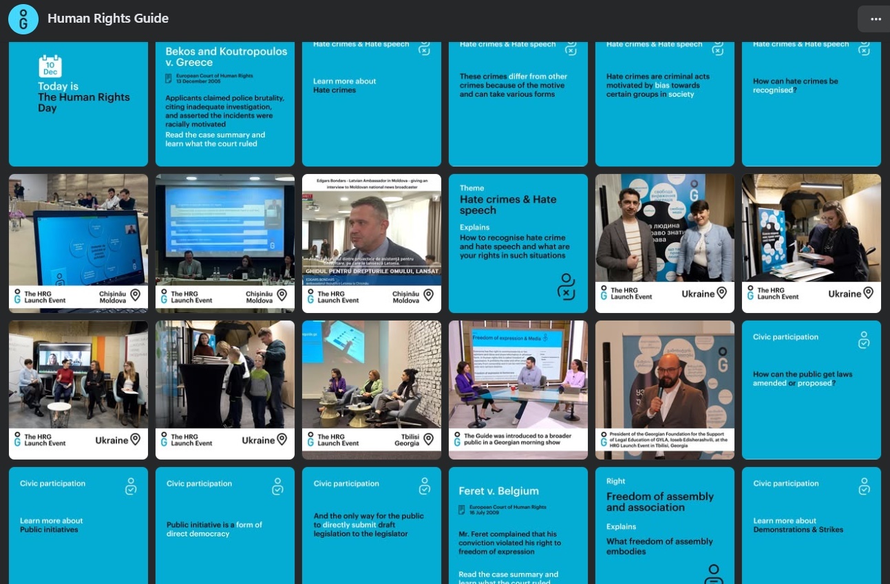 Ghidul privind Drepturile Omului pentru Moldova este o inițiativă care promovează cultura drepturilor fundamentale prin instrumente accesibile, resurse vizuale și exemple din contextul național. Ghidul privind Drepturile Omului pentru Moldova a fost lansat oficial pe Platforma europeană pentru educația în domeniul drepturilor omului în noiembrie 2023, și a devenit disponibil publicului larg pe platforma online – humanrightsguide.md – în limba română, rusă și engleză.