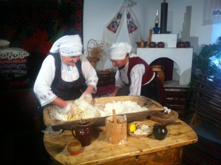 Oameni Pâinea de Paște, frământată cu mai multe mâini la Văleni