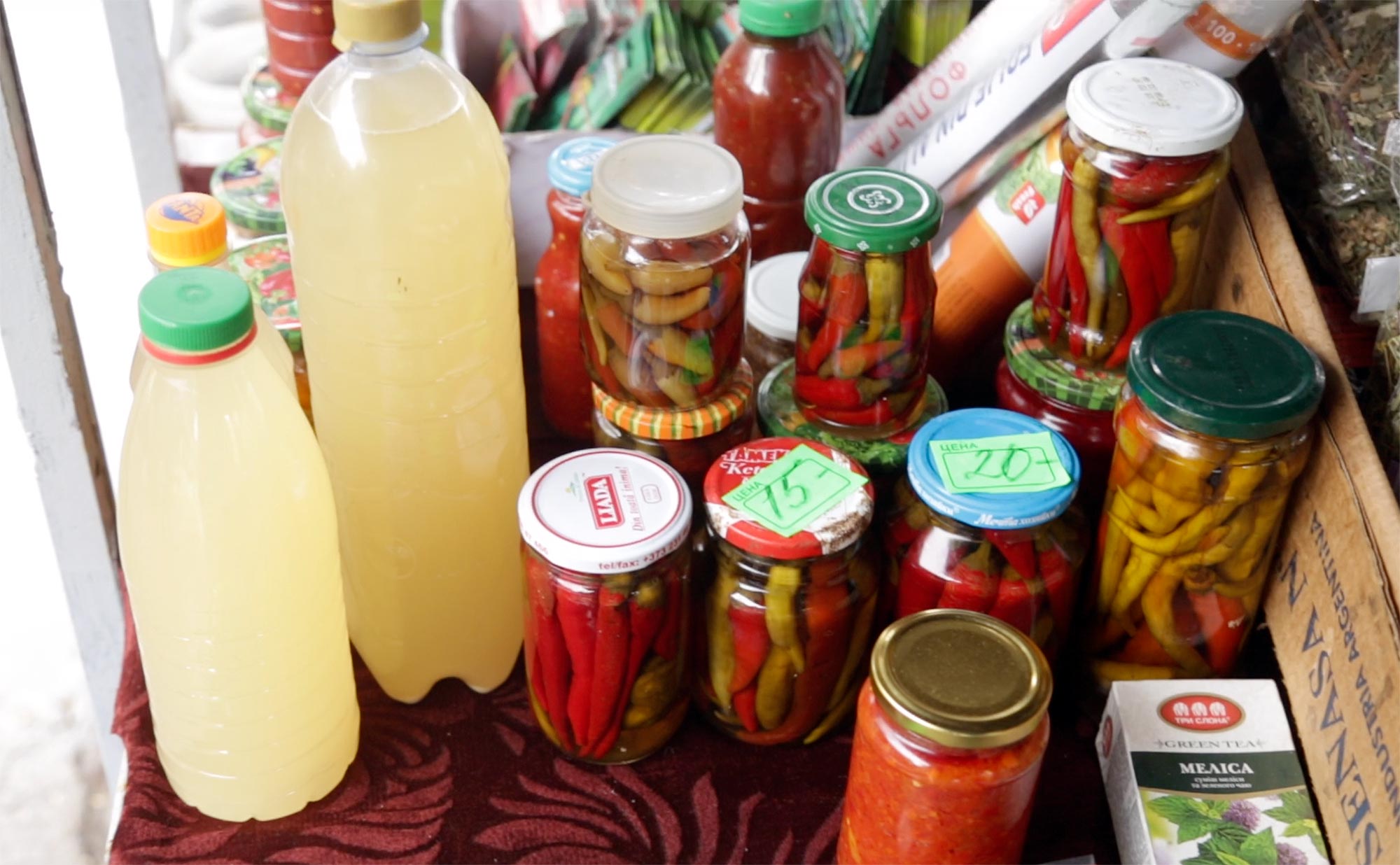 „Borșul îl dau cu cinci lei, ca la stat. Dar ce borș am eu, și ce borș cumpărați ‘neavostră de la stat. Vedeți ce culoare, dar ce gust are”, vrea pensionara să ne convingă. Ouăle costă 25 de lei, „căci sunt de ieri-azi, proaspete”.