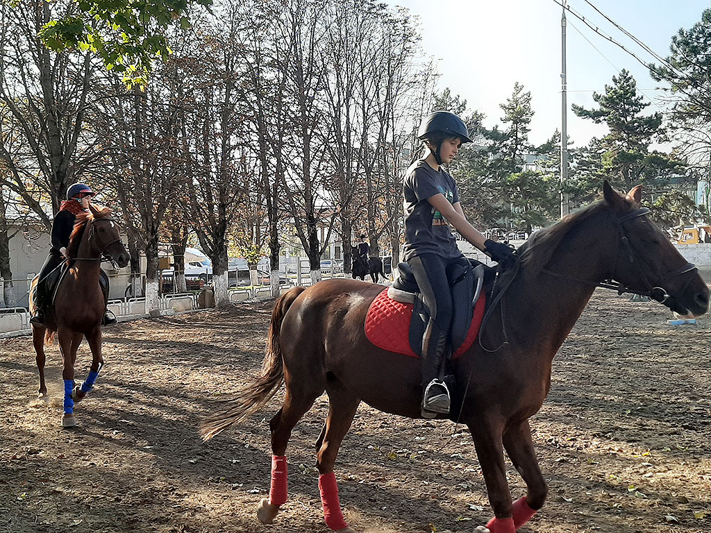 „Din programul nostru de studii dace parte și îngrijirea cailor. Înainte de antrenamente, fiecare persoană își curăță calul său, ales încă la înscriere. Această activitate reprezintă un fel de contact psihologic cu animalul. Pentru cai, vorbele celor care îi îngrijesc înseamnă foarte mult. Copiii îi netezesc, îi piaptănă, acest fapt îmbunătățindu-le circulația sangvină”, susține unul dintre antrenori.