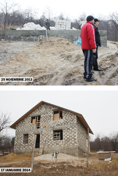 Se pare că a avut perfectă dreptate. Dacă la sfârşitul lunii noiembrie abia se punea temelia acelei case, vineri, 17 ianuarie, aceasta era deja ridicată, având chiar şi acoperiş. Urmează doar să fie instalate uşile, ferestrele, să fie efectuate lucrări de amenajare, astfel încât proprietarul să poată locui acolo. Casa este „apărată” de un câine şi îngrădită cu plasă din sârmă. Alături pot fi observaţi mai mulţi stupi de albine. Vinerea trecută, nu am găsit pe nimeni pe şantier, pentru a afla şi alte detalii.