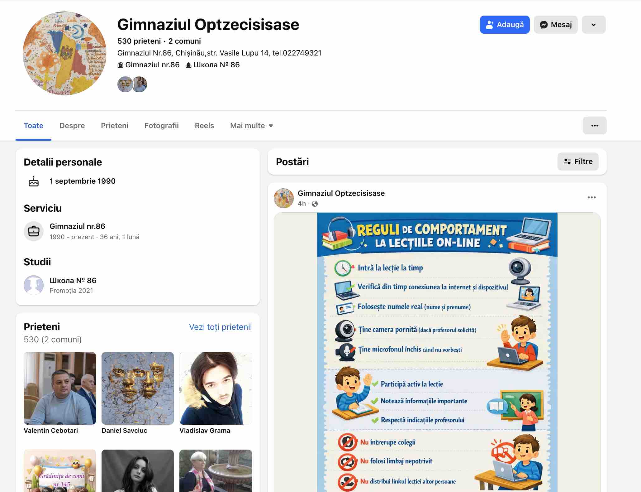 Discuția cu directorul „Gimnaziului Optzecisisase” (Gimnaziul nr. 86, n.r.), așa cum e denumită pagina instituției pe Facebook, a avut loc la începutul lunii decembrie, anul 2025. Deși a promis, Șendrea nu a revenit cu un apel pentru a conveni asupra discuției nici până la mijlocul lunii ianuarie a anului 2026.
