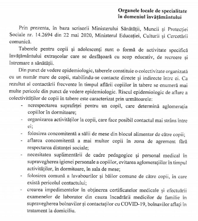 «С эпидемиологической точки зрения, лагеря – это организованные сообщества с большим количеством детей, предусматривающие прямые и косвенные контакты между ними. В результате частых контактов, когда дети находятся в лагерях, существует большое количество эпидемиологических опасностей. Эпидемиологический риск», – отмечено в документе, подписанном Игорем Шаровым.