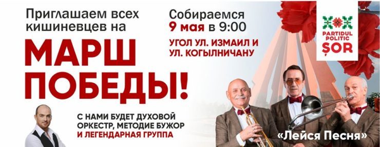 Марш победы организует и партия «Шор», только их марш начнется не с той же точки, что у ПСРМ. Также, как и другие политические партии, партия, возглавляемая Иланом Шором, организует концерт по случаю «Дня Победы». В мероприятии будет участвовать ансамбль «Лейся песня», а также певцы Мотодие Бужор и Игорь Химич.