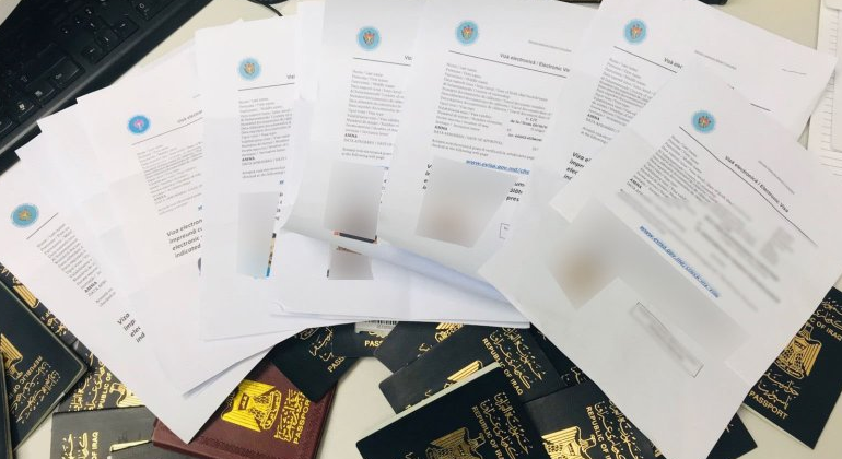 В результате пограничного контроля было установлено, что у упомянутых лиц были электронные визы, информация о которых была напечатана на листах A4. При их проверке было установлено, что такие визы не выдавались и, следовательно, являются поддельными.