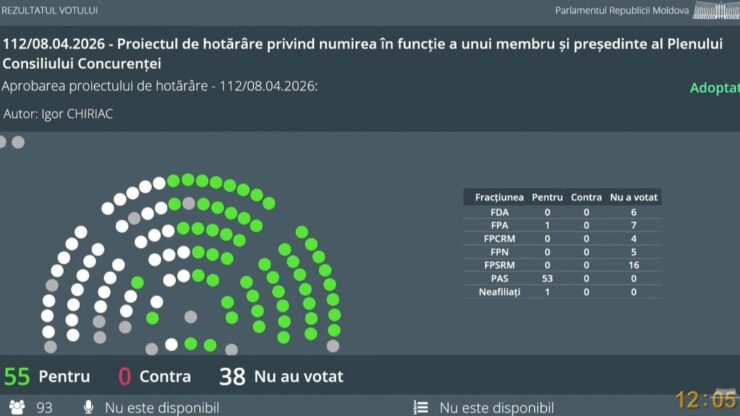 Алина Чеботарева, заместитель директора Организации по развитию предпринимательства (ODA), была назначена председателем Совета по конкуренции в четверг, 9 апреля. Ее кандидатуру поддержали 55 депутатов.