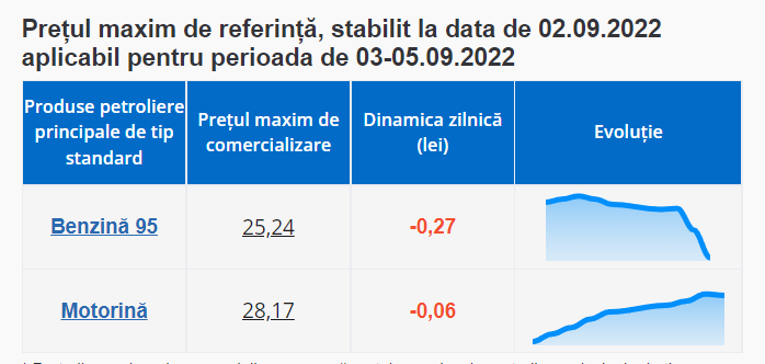 По данным НАРЭ, с 3 по 5 сентября, литр бензина А-95 будет стоить 25,24 лея. Этот вид горючего потерял в цене еще 27 банов.