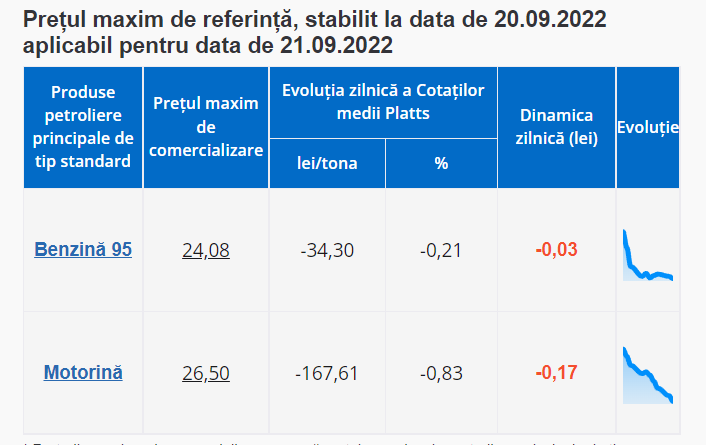 • котировок Platts на нефтепродукты, которые меняются в зависимости от цен на мировых биржах и курса лея,