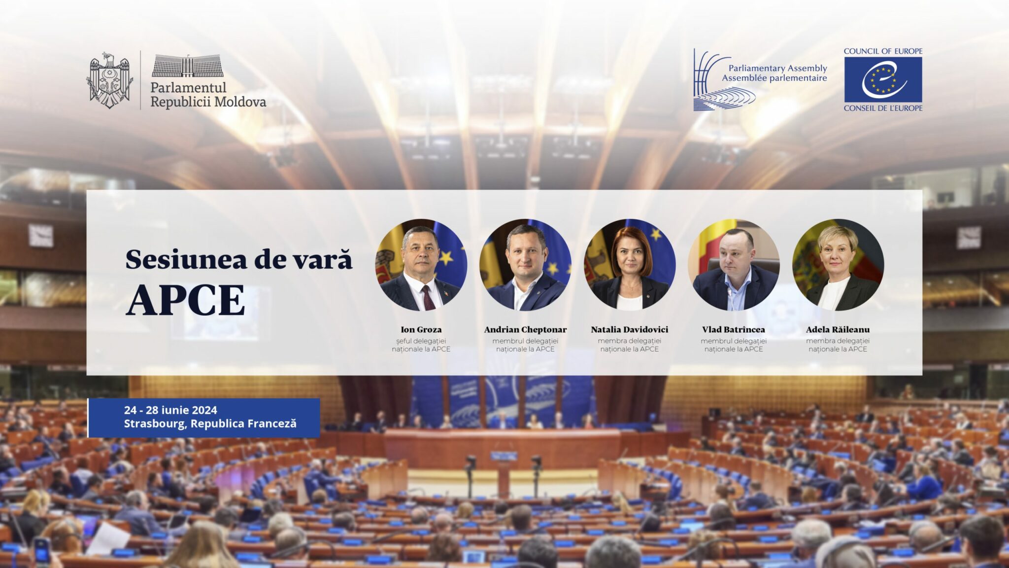 С 24 по 28 июня делегация из пяти молдавских депутатов примет участие в летней сессии Парламентской ассамблеи Совета Европы (ПАСЕ) в Страсбурге. В состав делегации, возглавляемой депутатом Ионом Гроза, вошли Наталья Давидович и Андриан Кептонар, депутаты от фракции партии «Действие и солидарность», а также Влад Батрынча и Адела Рэйляну, депутаты от фракции Блока коммунистов и социалистов.