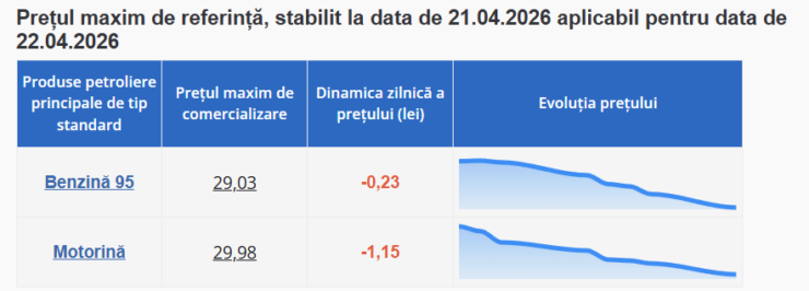 • 29,03 лея/литр — 95-й бензин (-0,23 бана)