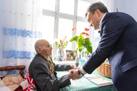 Дорин Речан в гостях у 100-летнего ветерана Алексея Еремчука. «Наш долг — сохранить мир, за который сражались деды и прадеды, и обеспечить лучшее будущее для будущих поколений»