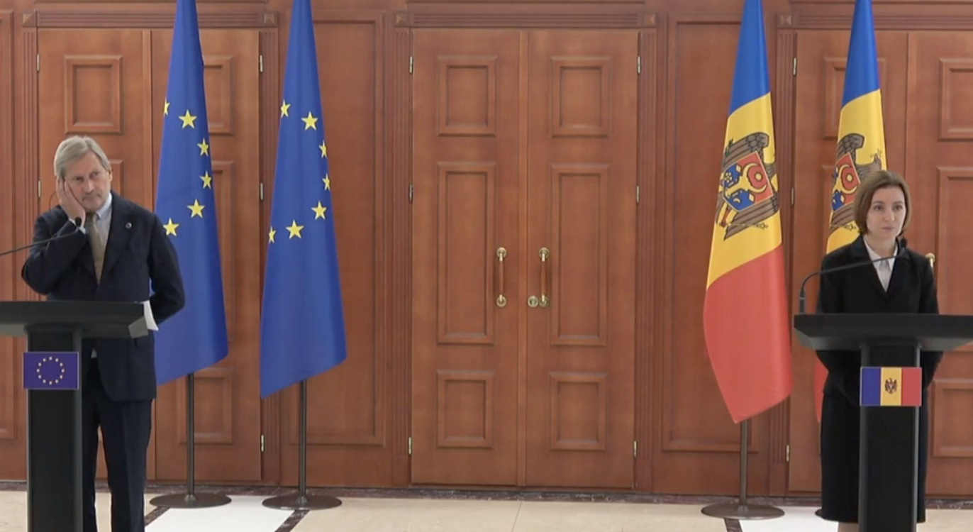 Президент Молдовы Майя Санду и еврокомиссар по бюджету и администрации Йоханнес Хан провели в Кишиневе двусторонние переговоры. После встречи они выступили в пятницу, 30 сентября, с заявлениями для прессы.