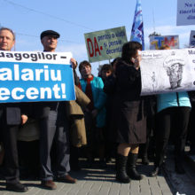 «Требования учителей должны быть удовлетворены конкретными фактами, а не обещаниями. Учителя страдали все годы с момента обретения независимости, игнорировались государством. Это национальный позор, что они и их семьи терпят лишения. Как учителя могут обеспечить качественный учебный процесс, если их главной заботой являются мысли о том, как им и их семьям прожить? Мы просим, чтобы у учителей были достойные зарплаты и выплачивались вовремя», – заявил Петру Кирияк, вице-председатель Национальной Конфедерации Профсоюзов Молдовы (CNSM).