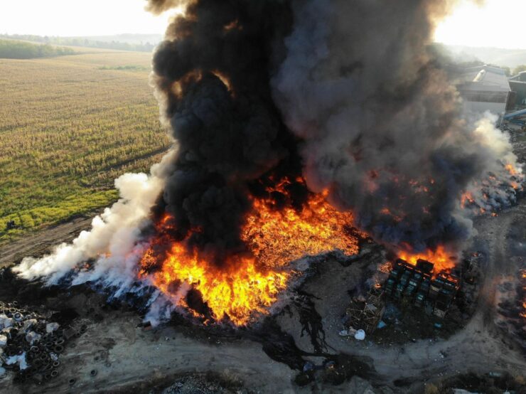 ФОТО Пожар на складе вторсырья в Кишиневе. Мэрия сообщает, что пожар произошел на территории частного хозяйственного агента