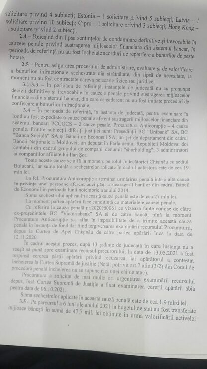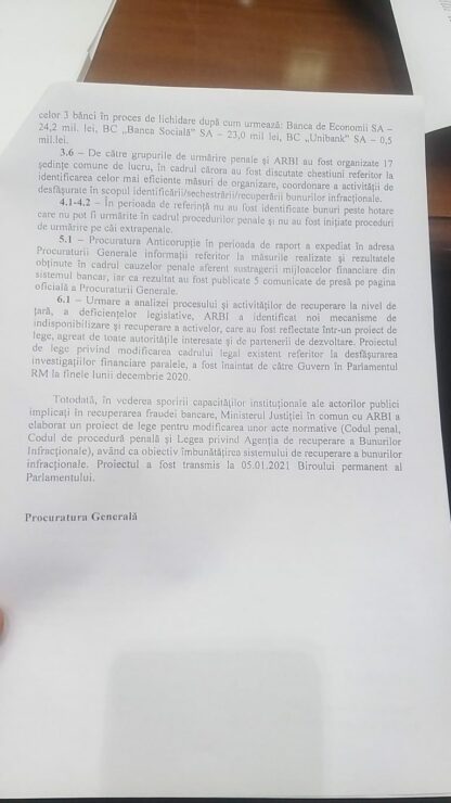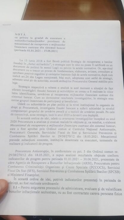 В четырехстраничном документе Стояногло говорит, в основном, о степени выполнения действий / дополнительных действий, предусмотренных механизмом возврата финансовых средств, украденных из банковской системы. По словам автора, отчет содержит данные за период с 1 января 2021 года по 19 августа 2021 года.