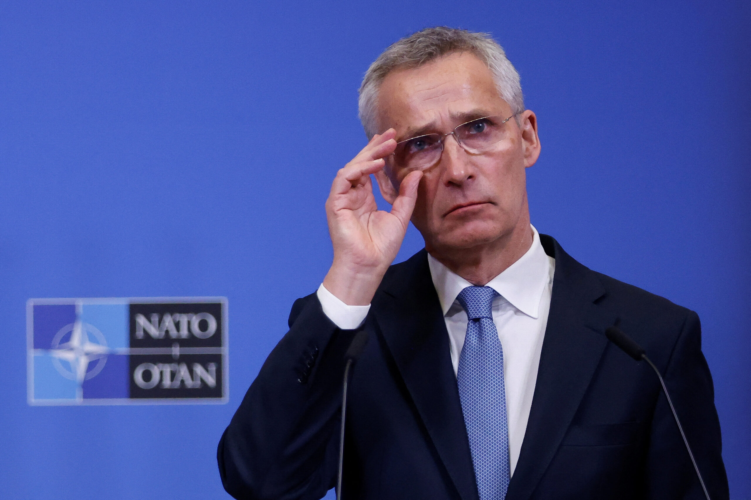 NATO Secretary-General Jens Stoltenberg attends a joint press statement with Czech President Petr Pavel at the Alliance headquarters in Brussels, Belgium April 19, 2023. REUTERS/Johanna Geron