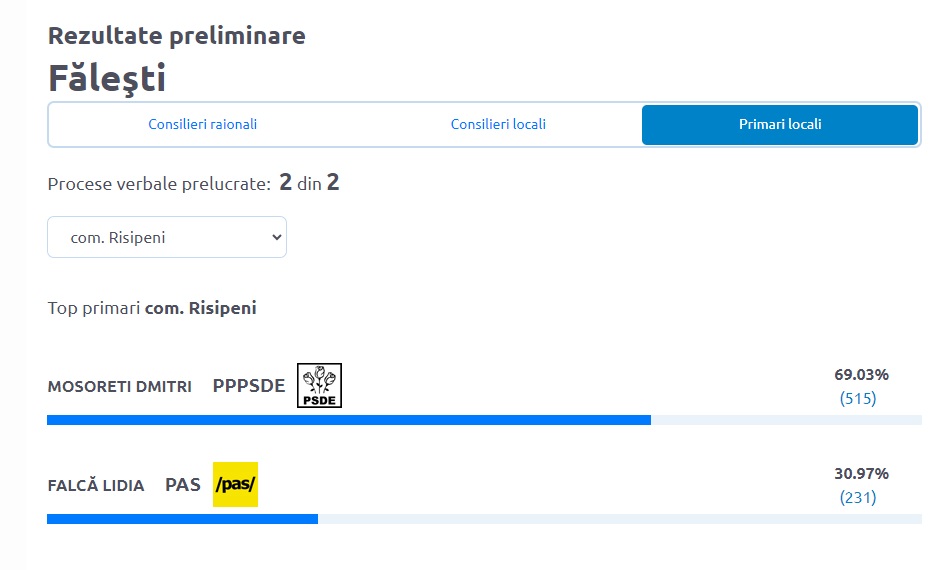 Кандидат от СДЕП Дмитрий Мосорети победил на выборах мэра коммуны Рисипень Фэлештского района, родного города президента Майи Санду.
