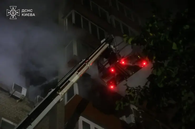 Пожар в результате российской атаки вспыхнул в Печерском, Деснянском и Голосеевском районах, а в Дарницком и Днепровском районах оккупанты попали в жилые многоэтажки. Там тоже вспыхнули пожары.