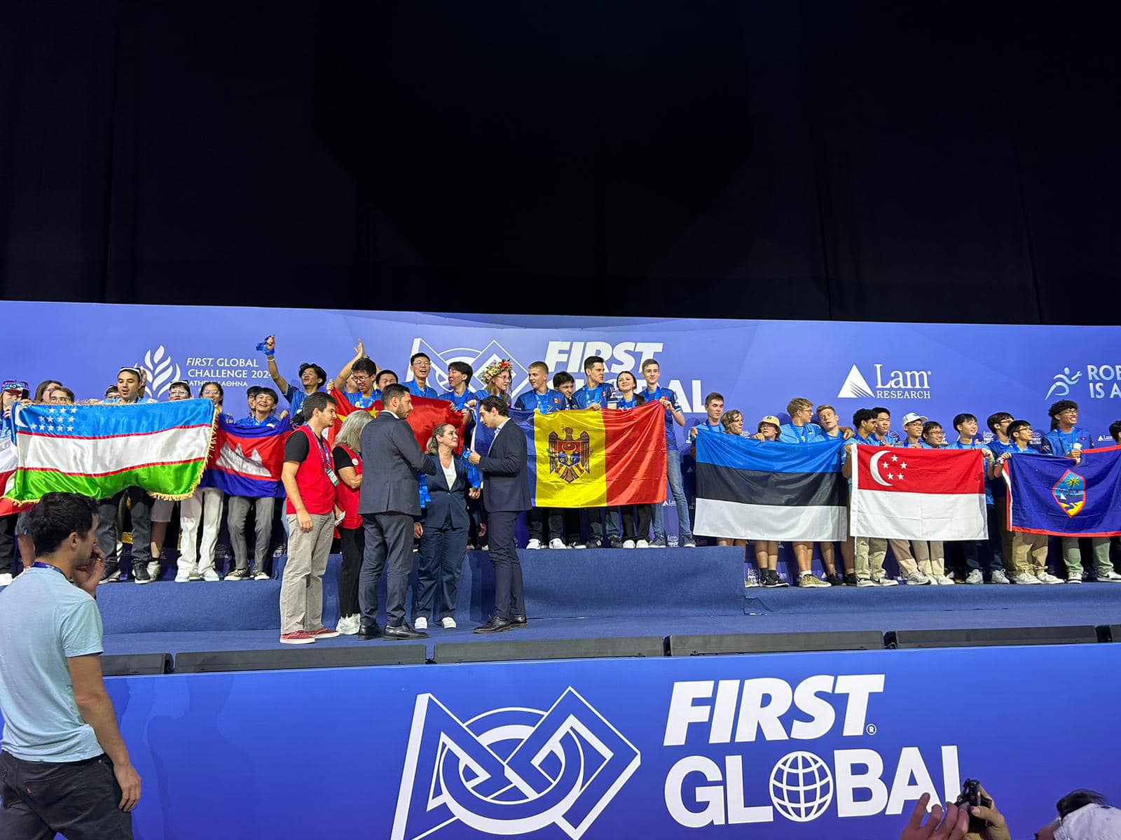 Участники из Молдовы стояли на пьедестале почета вместе с представителями Китая, Мадагаскара и Островов Кука.