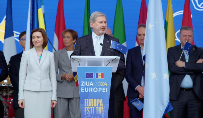 Сегодня, 9 мая, в Кишиневе и других городах Молдовы отмечается День Европы. Правительство Молдовы и Делегация Европейского союза организовали Европейский городок на столичной площади Великого национального собрания, на открытии которого присутствовали президент Майя Санду и европейский комиссар по бюджету и администрации Йоханнес Хан.