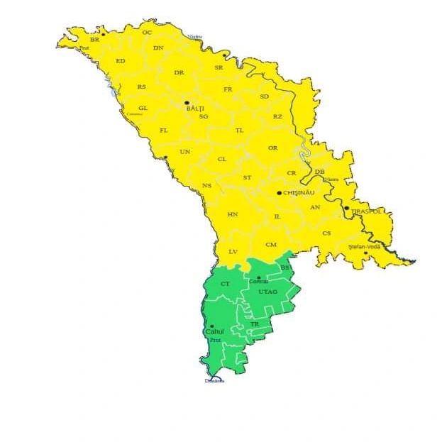 Государственная гидрометеорологическая служба Молдовы объявила желтый код из-за атмосферной нестабильности на вечер пятницы, 9 августа. Метеопредупреждение действует для большей части страны, за исключением южных районов.