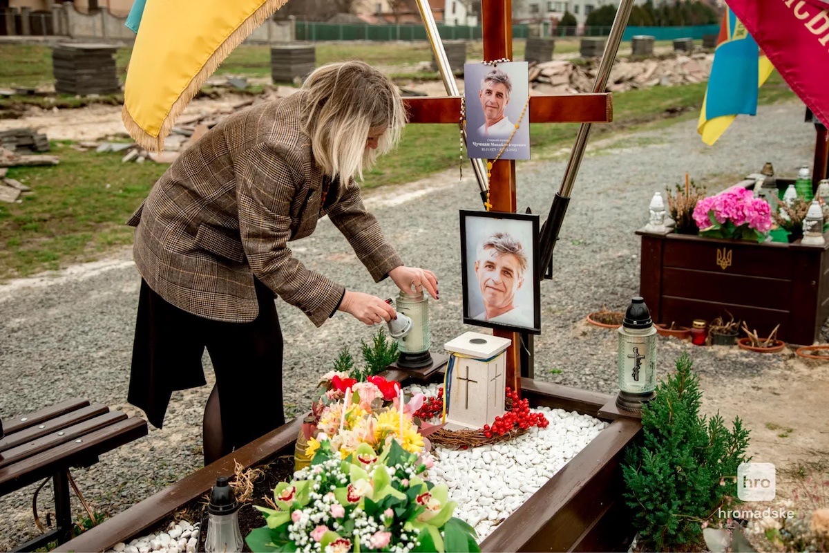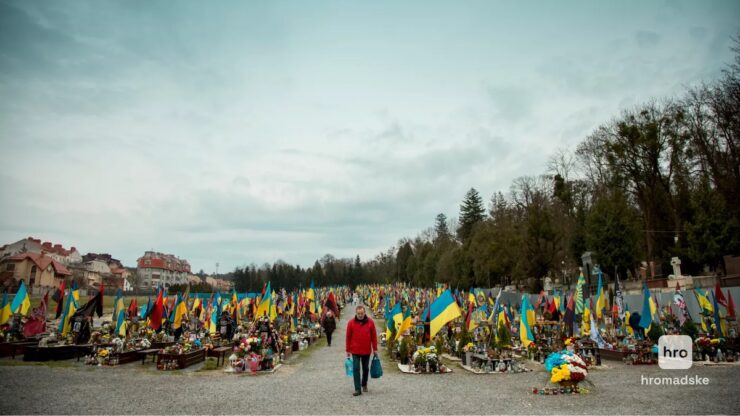 Мария Чучман идет по центральной аллее Марсового поля во Львове. Вокруг шумят флаги на могилах военных. На этом кладбище покоятся только погибшие за время полномасштабного вторжения. Похороны почти каждый день.