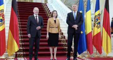 Трехсторонняя встреча в Бухаресте: Клаус Йоханнис принимает во дворце Котрочень президента Молдовы Майю Санду и канцлера Германии Олафа Шольца Nou Важное