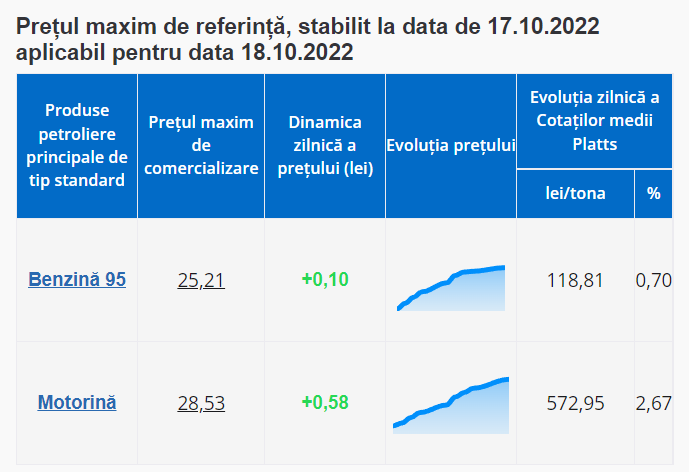 - котировок Platts на нефтепродукты, которые меняются в зависимости от цен на мировых биржах и курса лея,