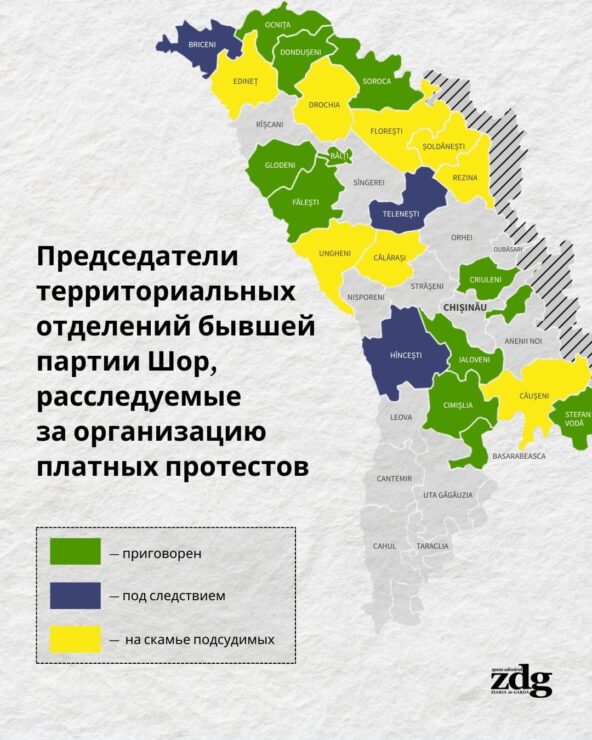 Согласно приговорам, которые проанализировала ZdG, из 11 председателей территориальных отделений бывшей Партии «Шор», признанных виновными в сознательном принятии финансирования политической партии со стороны организованной преступной группы или преступной организации, только двое были заключены под стражу до вступления решений суда в силу. Это главы Окницкого и Дондушенского районов. Еще пятеро ответственных лиц скрылись, хотя до вынесения приговора им была назначена мера пресечения в виде запрета на выезд из страны.