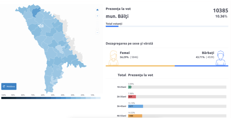 В Бельцах наблюдается одна из самых низких явок избирателей в стране. На этот час зарегистрировано только 10% избирателей, на выборы пришло около 10 тыс. человек.