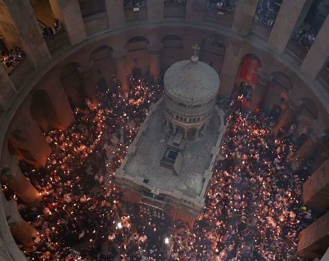 После нескольких часов ожидания в субботу греческий православный патриарх выходит из небольшой часовни, в которой находится сам Гроб Господень, с зажженной свечой — акт, который считается ежегодным чудом перед православным пасхальным воскресеньем.
